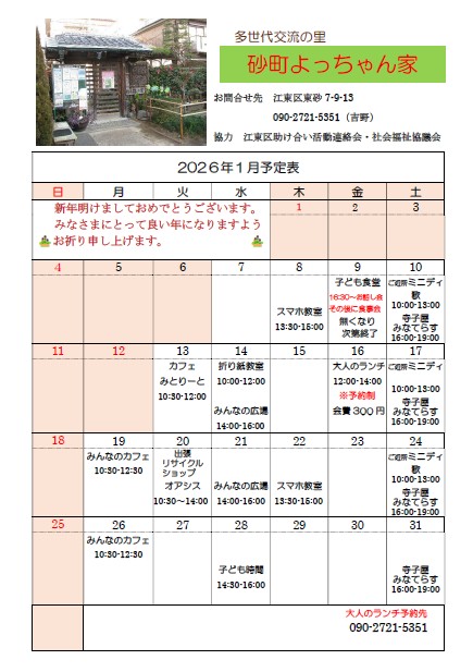 ホーム > 地域福祉推進課 > 地域福祉活動支援事業 砂町よっちゃん家1月のお知らせ