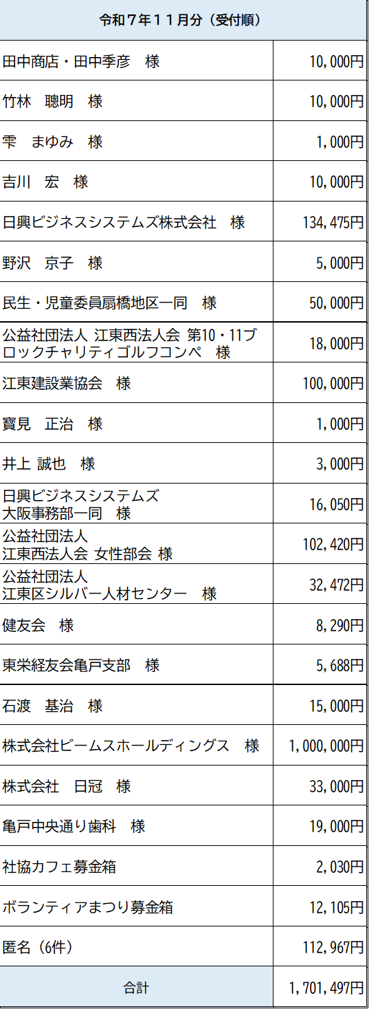 令和7年11月寄付のご報告