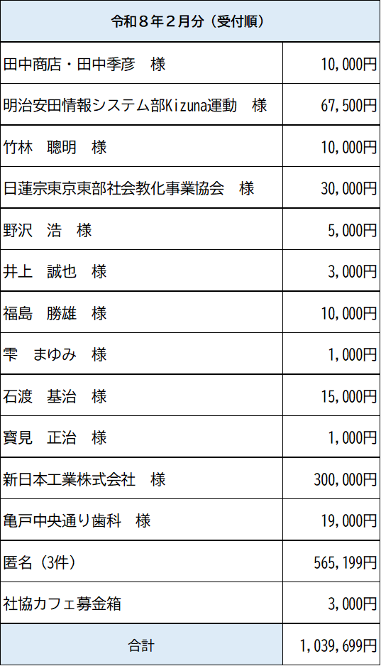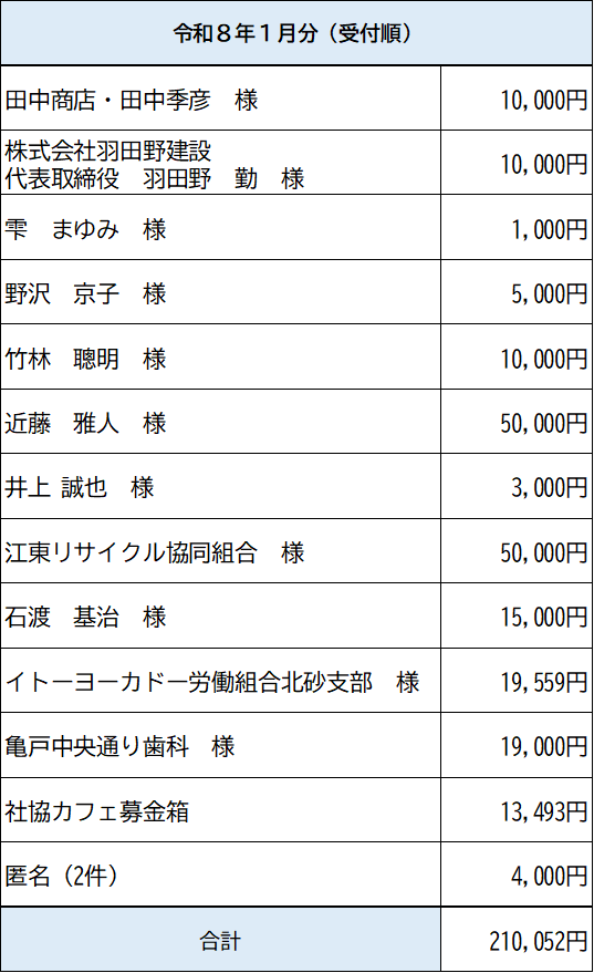 令和8年1月寄付のご報告