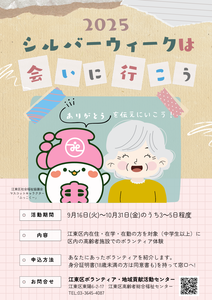 ホーム > 江東区ボランティア・地域貢献活動センター > 「シルバーウィークは会いに行こう」参加者大募集!