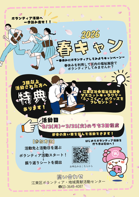 ホーム > 江東区ボランティア・地域貢献活動センター > 「春キャン2026」参加者大募集!